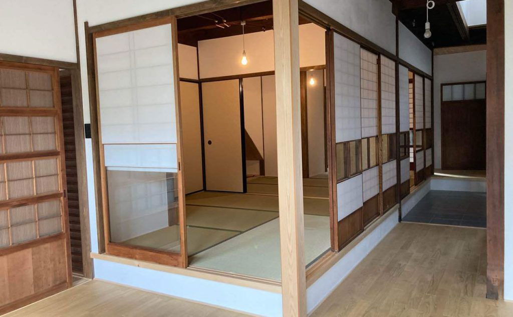 お施主様こだわりの古い建具を組み込み、既存の魅力を引き出しました。ガラス建具は寒さ対策にも。
